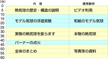 必要スペース 50m×50m以上の平らな土地。(車両の乗り入れが可能で、上空や周囲に障害物がないこと) 気象条件 地上・上空ともに風が風速3m/s以下であること ※雨天・強風・降雪・雷などの場合は運行できません。 実施時刻 一般的に風が吹きやすい時間帯(11時~15時頃)は実施確率が低くなり、朝の早い時間ほど確率があがります。なお、夜間は実施できません。 安全性 専用スタッフ4~5名で運行。熱気球は空の乗り物の中で一番安全です。(万一に備え、第三者賠償責任保険・搭乗者傷害保険・機体保険にも加入しています) オプション ドア付きのバリアフリーバスケット 熱気球を一緒に立ち上げる体験型の熱気球教室 クレジット幕でオリジナルバルーンに変身!