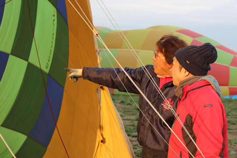 あなたも熱気球を操縦してみませんか? 大空をゆったりと飛ぶ熱気球は、家族や仲間たちと大勢で楽しめる、安全性の高いスカイスポーツです。 風に乗り自然と一体となって飛ぶ熱気球のパイロットに、あなたもチャレンジしてみませんか? パイロット・トレーニングは、日本気球連盟に認定されたインストラクターの指導のもとに行われます。実技訓練中に与えられる様々な課題をクリアしてインストラクターからの推薦を得られると、日本気球連盟のイグザミナー(試験官)立ち会いによる実技試験と筆記試験が実施され、これに合格すればあなたも熱気球パイロットの仲間入りです。